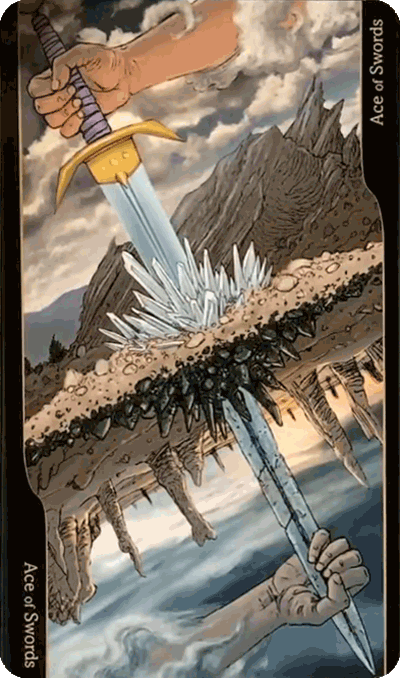 Ace of Swords as intentions. Purpose and determination. When it comes to actions or motives, the Ace of Swords as intentions reveals a clear and focused mindset. This is someone who knows what they want and is determined to get it. The Ace of Swords intentions show courage, directness, and the drive to succeed – whether in love, career, or personal growth. This person intends to face challenges head-on, using logic and truth as their tools.