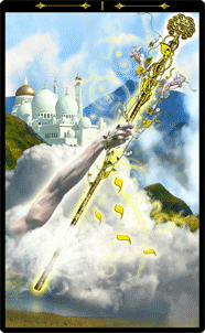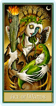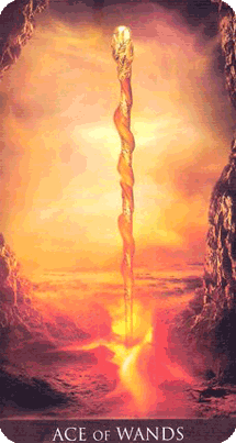 - Ace of Wands upside down = reflection and restoration of inner fire.