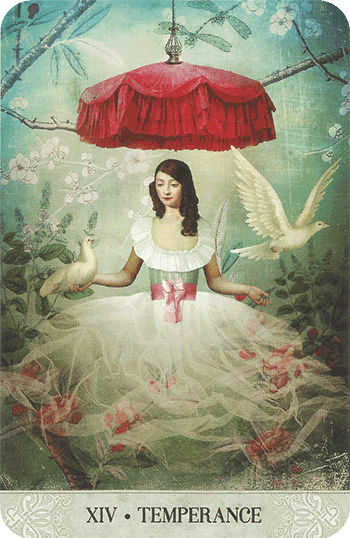 Summary. What does temperance mean in tarot? The Temperance tarot card meaning is moderation, balance, and harmony. It is the card of the middle path, where conflicts end, and peace begins. It reminds you to wait, stay patient, and trust the process.