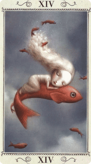 Temperance + Moon (V + XVIII). Fear of aging, loneliness. Illness takes over. Strong emotions disturb. Nervous tension. Obsession. Metabolism issues.