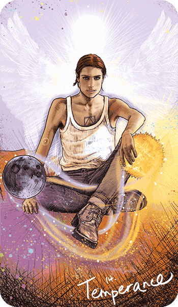 Everyday character. The temperance card as a person represents someone honest, reliable, and disciplined. They work with care, focus, and patience. They give blessings through words and actions. Their presence often brings comfort and stability.