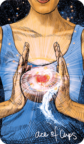 A gift from the universe. When the Ace of Cups appears in your tarot reading, it feels like the universe is handing you a divine gift – an overflowing cup of emotion, love, and creativity. The Ace of Cups meaning is deeply connected to new emotional beginnings, joy, and spiritual abundance. This ace of cups tarot card represents the birth of feelings so pure and healing that they can transform your life from within.