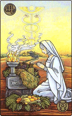 Hierophant + Ace of Pentacles – strict adherence to moral norms.