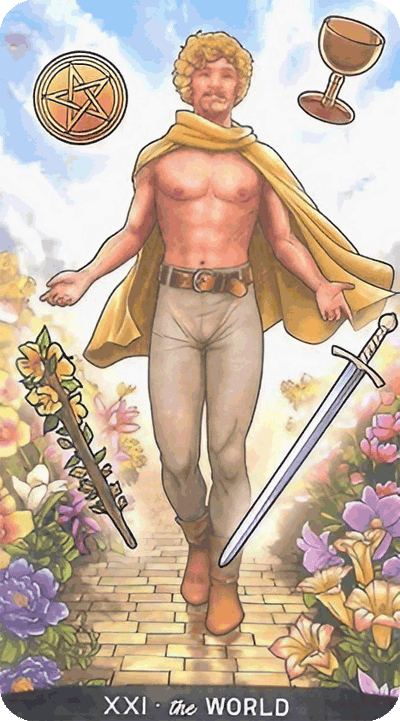 The World Tarot is the final Major Arcana card – a symbol of completion, fulfillment, and mastery. When this powerful card appears in your reading, it speaks of success, integration, and the realization of your purpose. Whether you draw the world tarot in the past, present, or future position, it represents moments when everything in your life connects – when your lessons come full circle.